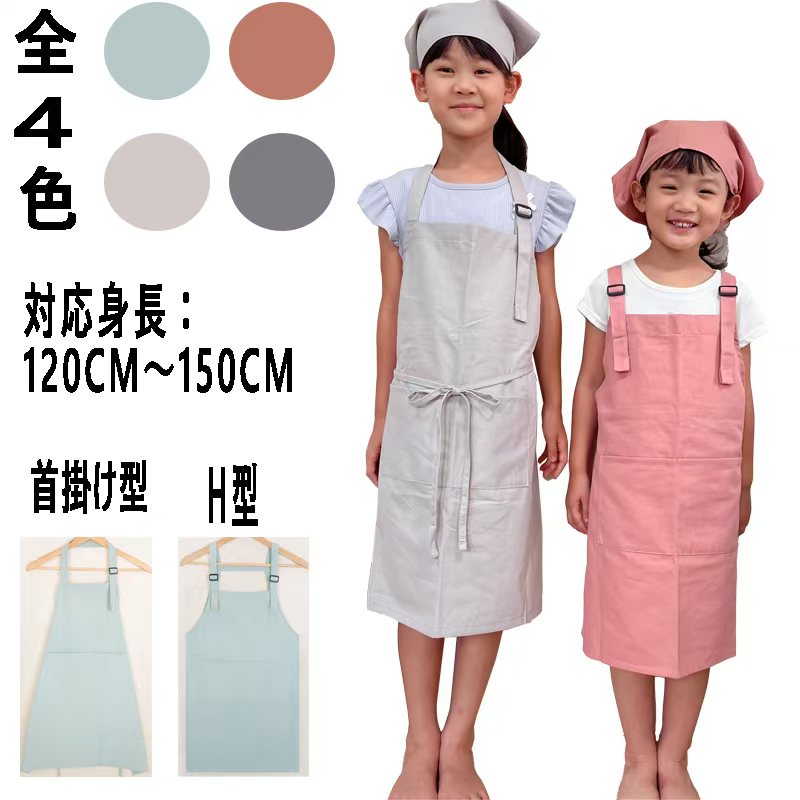 エプロン子供 エプロン エプロン三角巾セット 子供エプロン キッズエプロン 小学生エプロン 男の子 女の子 男女兼用 送料無料無地 シンプル H型 首かけ