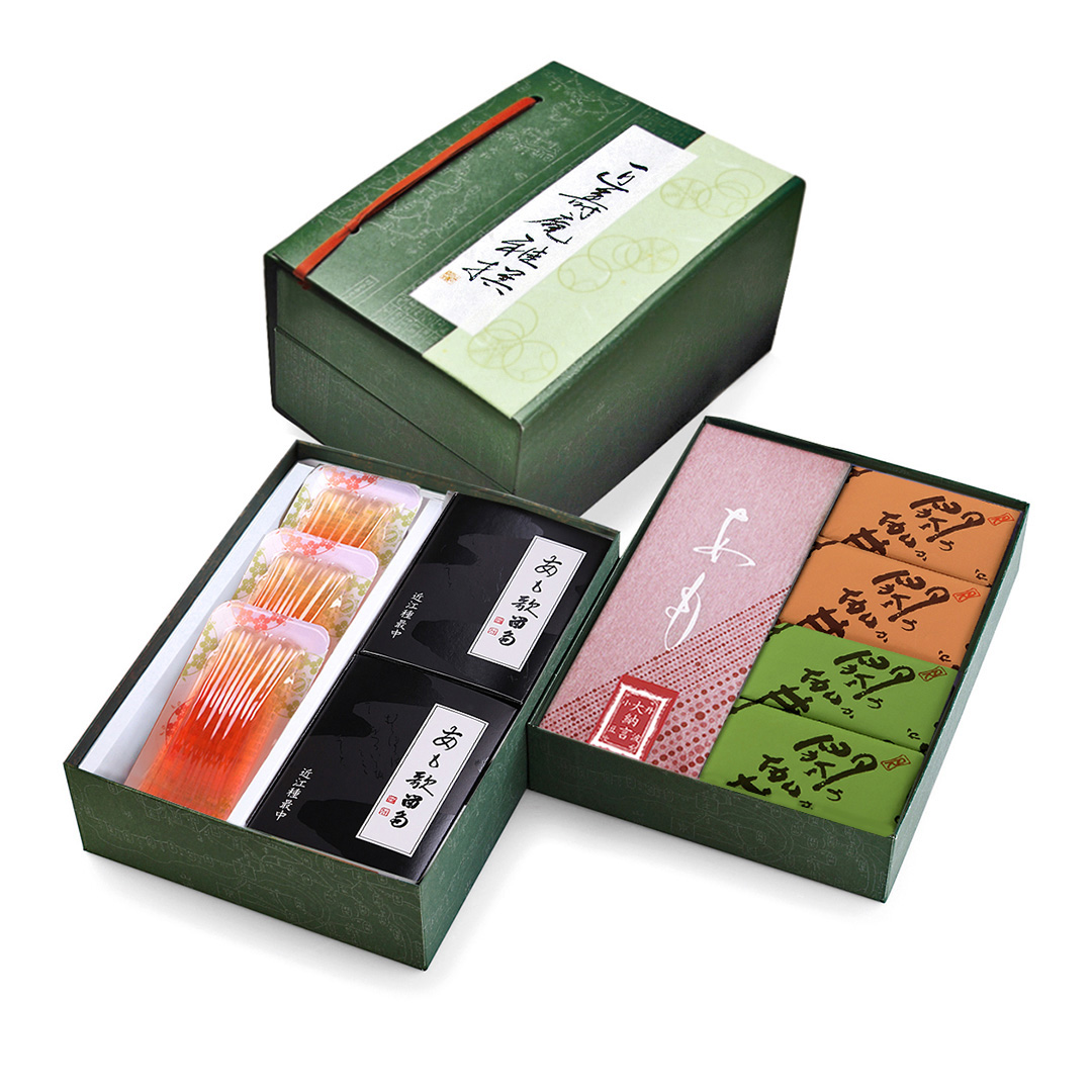 やわらかな羽二重餅に、やさしくほどける小豆を合わせた代表銘菓<あも>をはじめ、定番の人気菓子が詰まったギフトです。