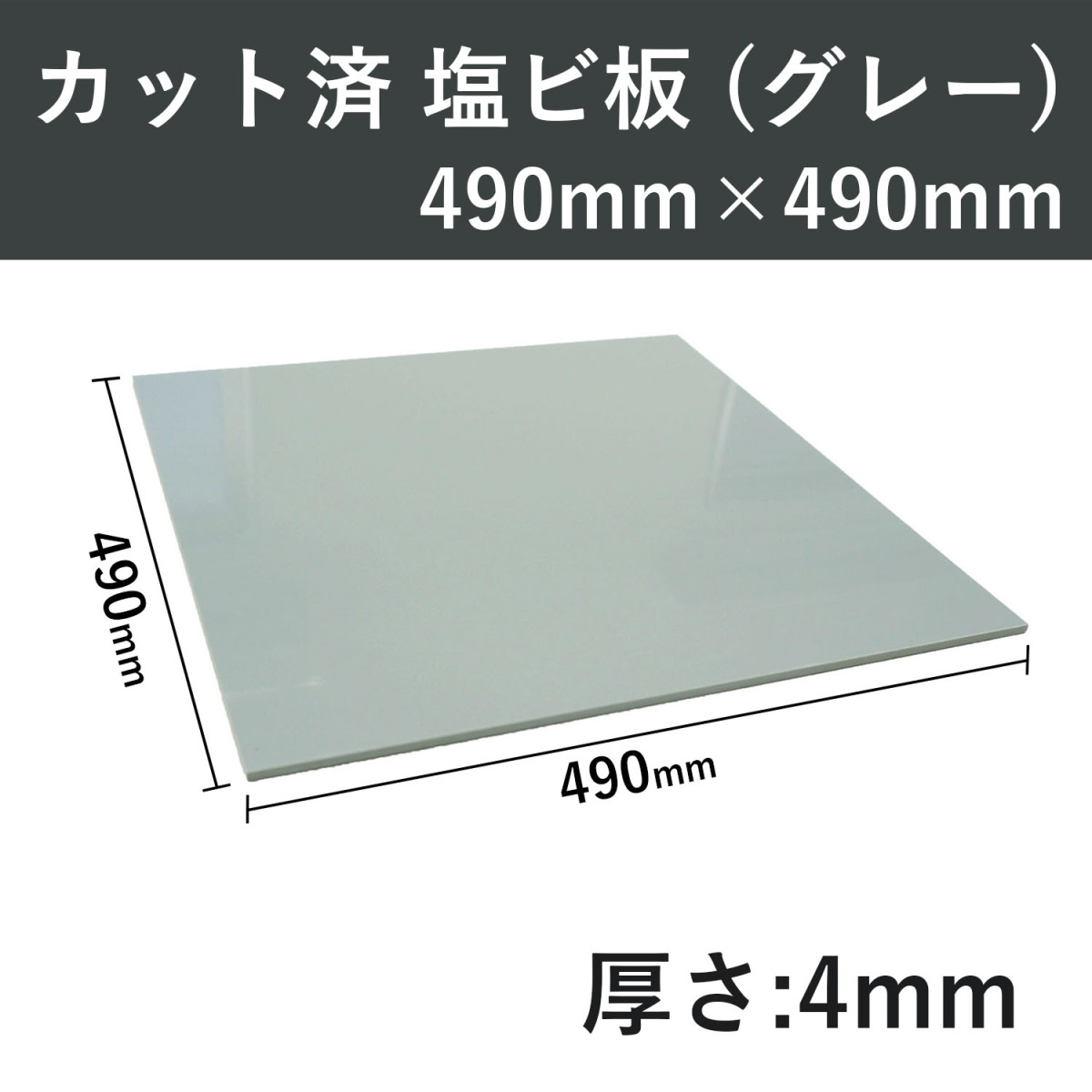 PVC 塩ビ板 プレート 490mmx490mm 厚さ4mm グレー 正方形 関西化工