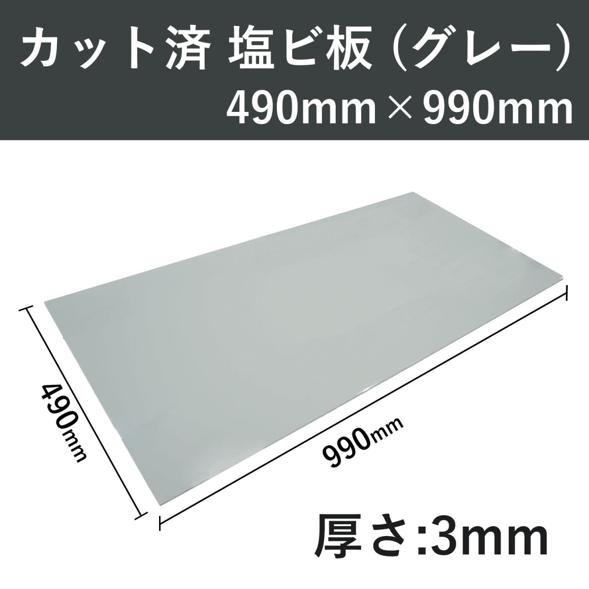 PVC 塩ビ板 プレート 490mmx990mm 厚さ3mm グレー 関西化工