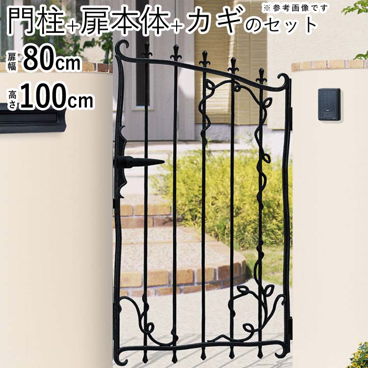 門扉 片開き おしゃれ ガーデン 門扉フェンス 門柱タイプ 0810 5型 三協アルミ プロヴァンス門扉 扉幅80cm×高さ100cm