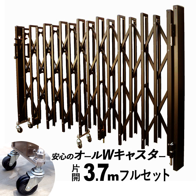 激安アコーディオン伸縮門扉(伸縮ゲート/カーゲート/カーテンゲート/アコーディオンフェンス/駐車場の入り口) 安心/安全の日本製 片開き仕様の伸縮アルミフェンスは、 老舗メーカーとコラボ商品のため、 コストパフォーマンスに優れており、高品質で耐久性が抜群です 先端と中間にダブルキャスターを設置しスムーズな開閉かつ、静かで軽い動作を実現しました