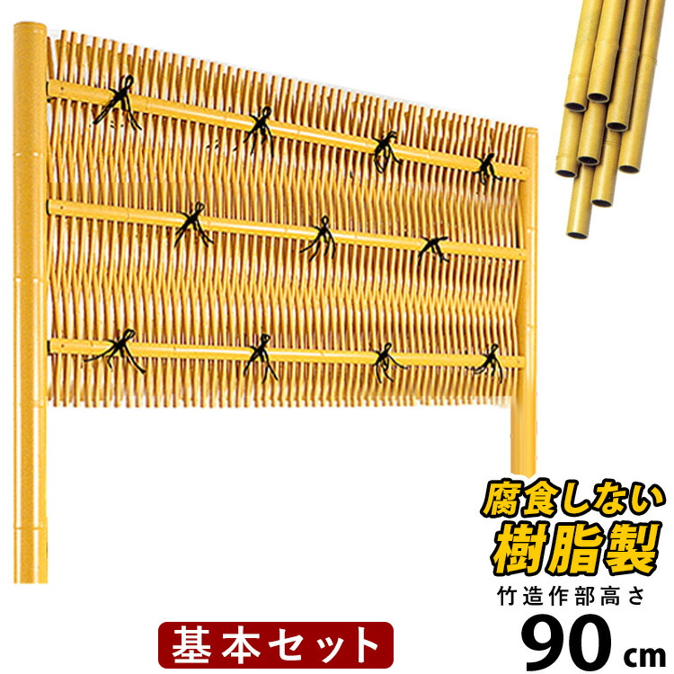 竹垣フェンス 目隠し 竹フェンス 後付け 人工 竹垣 仕切り diy フェンス 組立式大津垣 O型 基本 高さ 90cm 基本セット