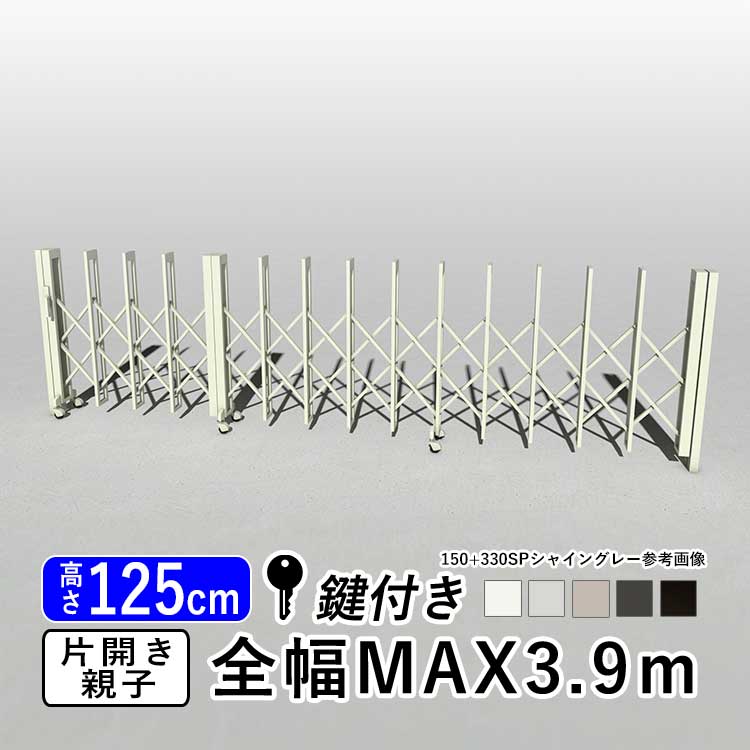 門扉 片開き親子 アコーディオン門扉 LIXIL アルミ門扉 鍵付き 伸縮門扉 キーあり 駐車場 アルシャインII L型 Aタイプ ノンレール 150+270SP 幅3.9m