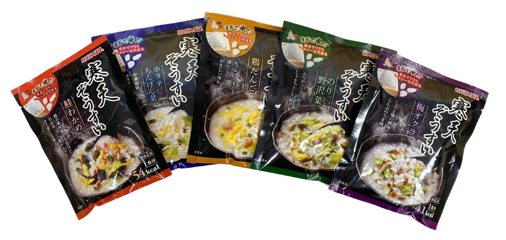 お試し かんてんぱぱ 寒天ぞうすい ホタテ・ちんげん菜 19.2g 鶏だんご 23g 梅・オクラ 15.2g 鮭・わかめ 18.5g のり・野沢菜 19.4g8g(4901138801513-abcde)