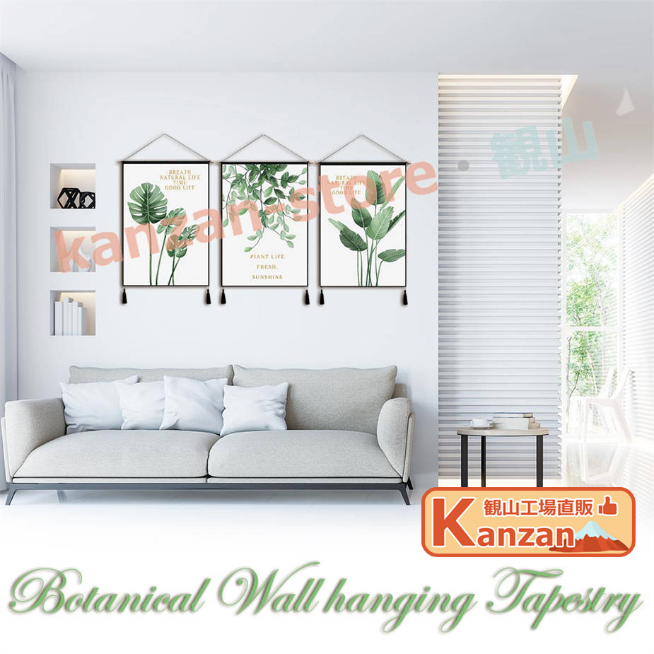 3枚セット タペストリー ボタニカル 壁掛け 北欧 おしゃれ ナチュラル シンプル 植物 グリーン リーフ 癒し 部屋 飾り付け 窓 背景布 ファブリ