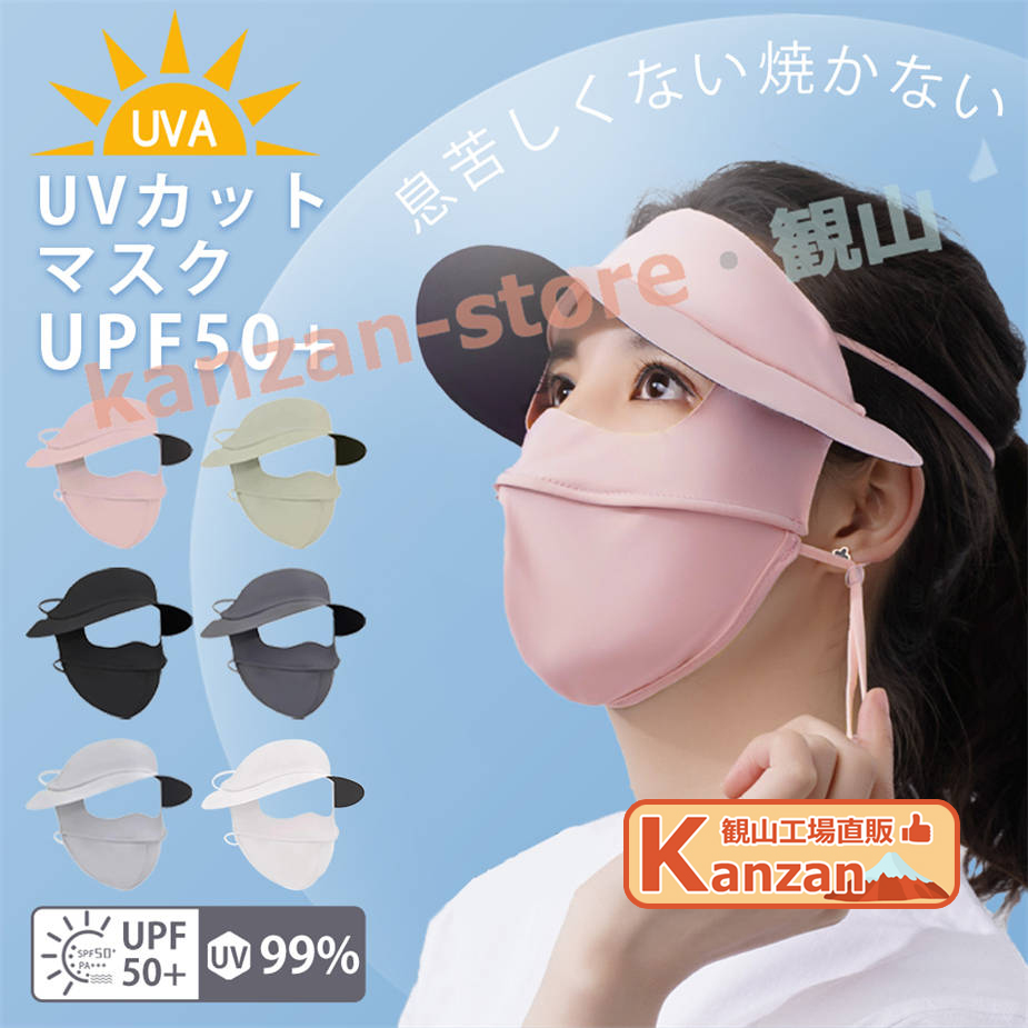 フェイスカバー uvカット 日焼け防止 マスク 冷感 顔全体 全顔マスク 目開き 目の空いた 夏用 息苦しくない UPF50+ 繰り返し洗える 蒸れな