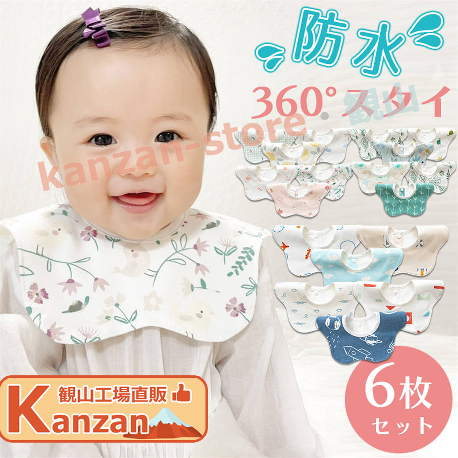 スタイ 防水 福袋 6枚セット よだれかけ 360 よだれカバー お食事エプロン ベビー 女の子 男の子 セット 赤ちゃん キッズ 子供 スタイセット