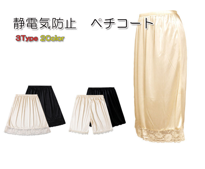 【メール便/定形外で送料無料】サラサラ レース付きペチコート トリコット シンプル ペチコート スカート/パンツ 選べる 2カラー3タイプ