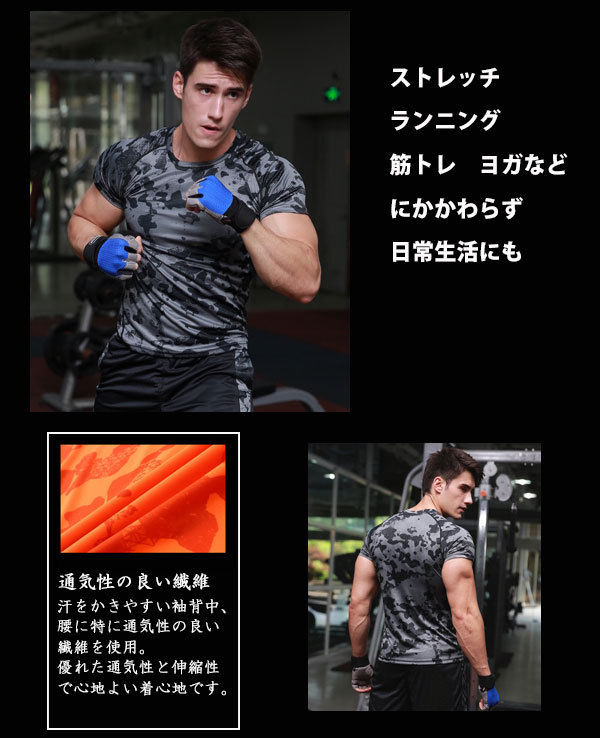 メンズ スポーツシャツ MA43 アンダーシャツ ランニングシャツ半袖 ウエア サッカー コンプレッション フィットネス トレーニング メンズ 吸汗速乾UVカット