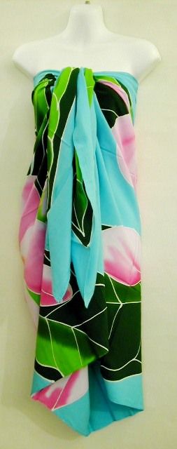パレオ プルメリア ターコイズ ピンクフラワー PAI-74