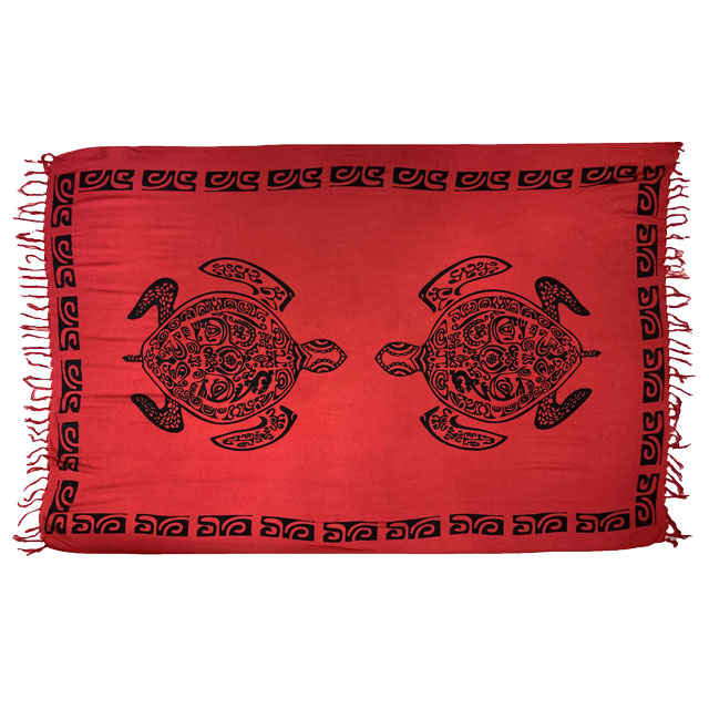 訳あり特価。フルサイズパレオ ホヌ レッド (薄手、汚れ、キズ、染ムラ、織ムラあり)PABM116
