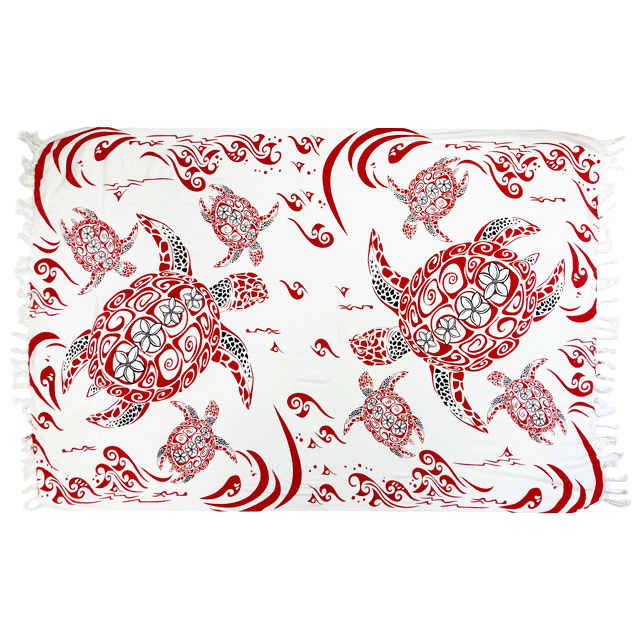訳あり特価。フルサイズパレオ ホヌ ホワイト・レッド (薄手、汚れ、キズ、染ムラ、織ムラあり)PABM129