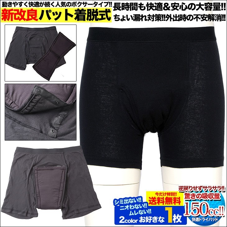 失禁パンツ 尿漏れパンツ 男性用 メンズ 男性用 吸収量150cc 尿漏れ対策、失禁対策に 綿100% パッド取り替えタイプ