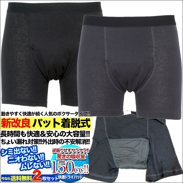 尿漏れパンツ 失禁パンツ 2枚セット 男性用 メンズ 男性用 吸収量150cc 尿漏れ対策、失禁対策に 綿100% パッド取り替えタイプ