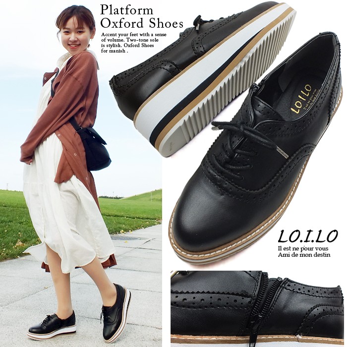 LO.I.LO ロイロ オックスフォードシューズ レースアップシューズ 厚底 ツートンカラーソール マニッシュ トラッド プラットフォーム カジュアル レディース 爆買