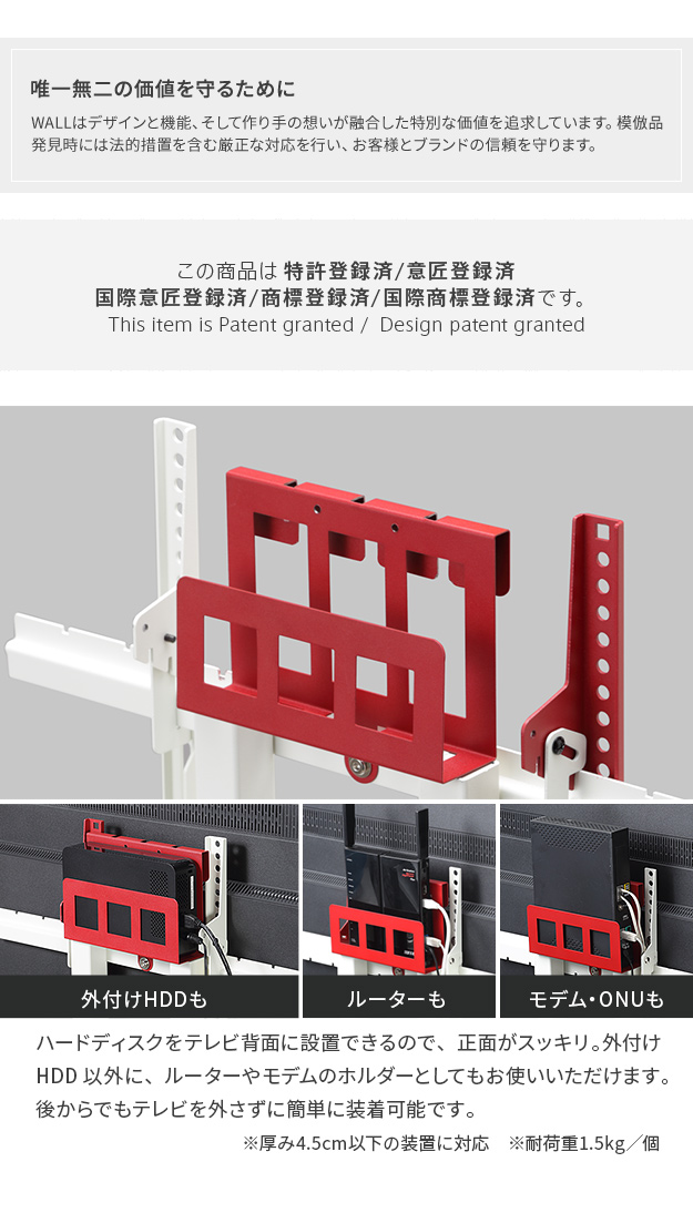 メーカー直送 WALLインテリアテレビスタンド HDDホルダー V2/V3/V4/A2/M1/テレビ台用スタンド/PRO 追加オプション 背面収納 部品 セブンスタンド 代引き不可