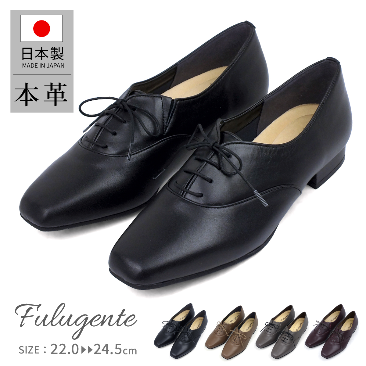 レースアップシューズ 本革 日本製 編み上げ ローヒール スクエアトゥ コンフォート 痛くない 歩きやすい クラシカル マニッシュ おしゃれ レディース 爆買