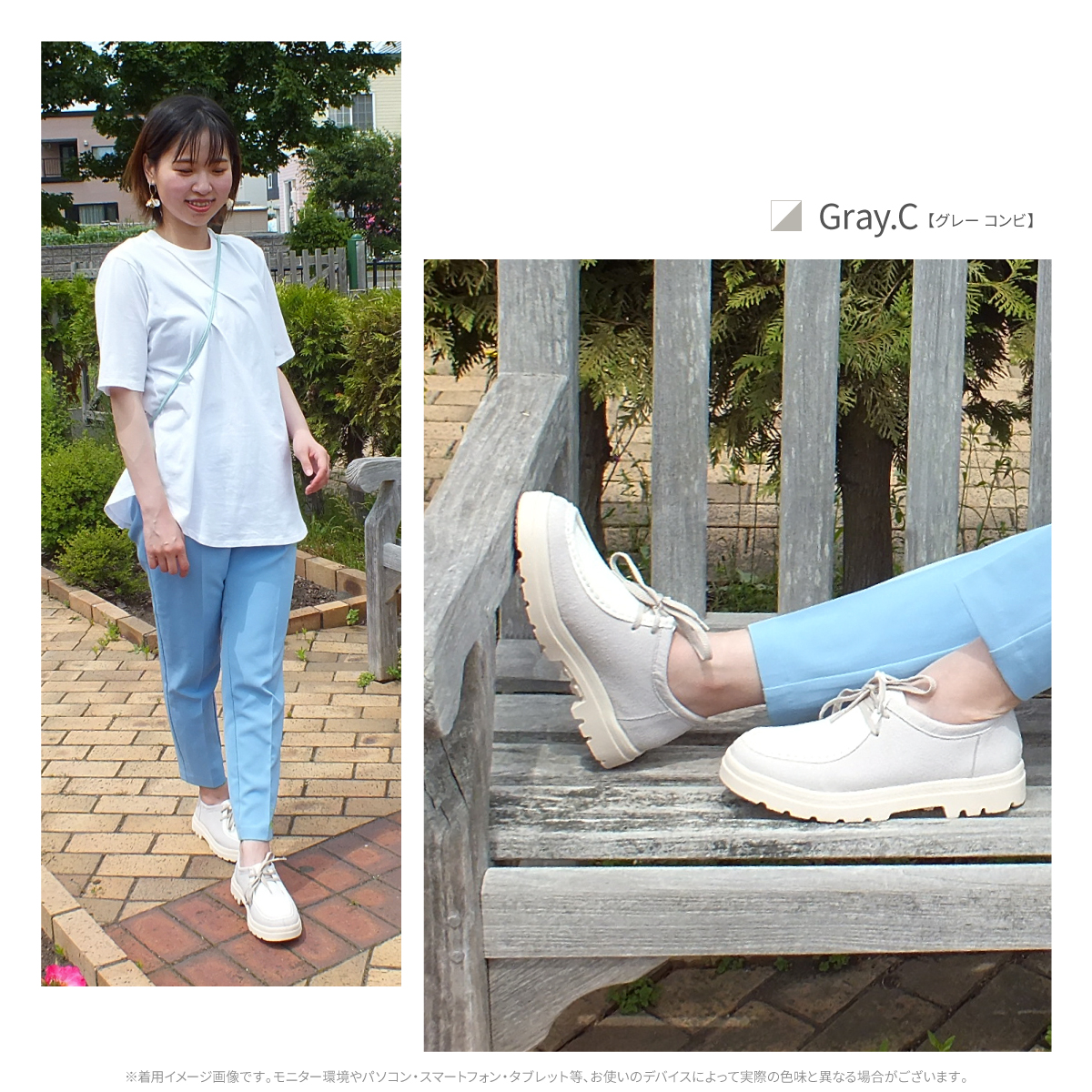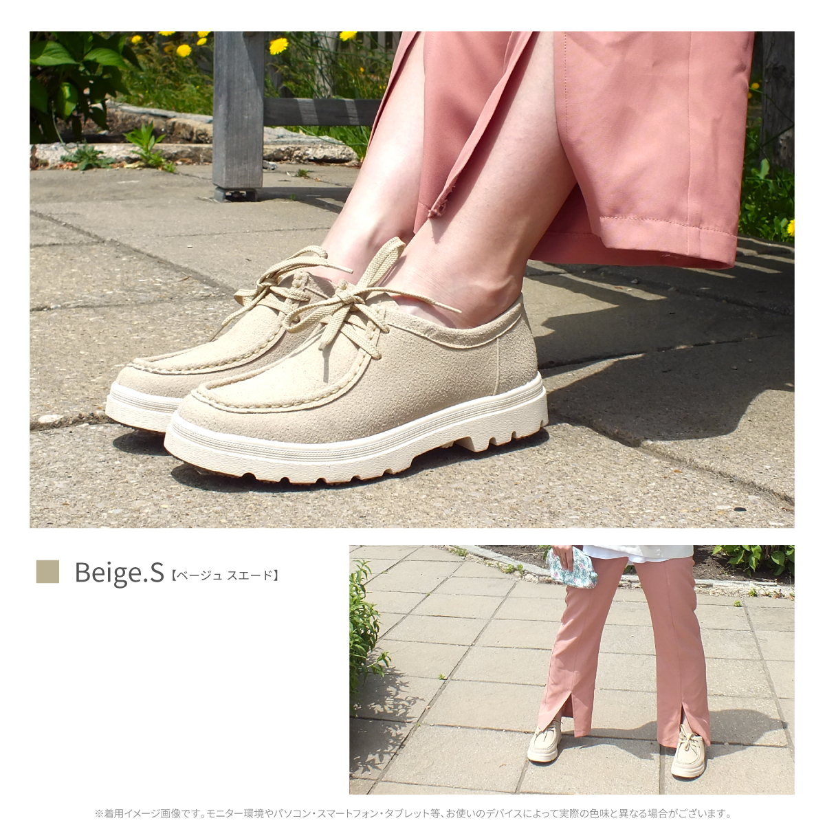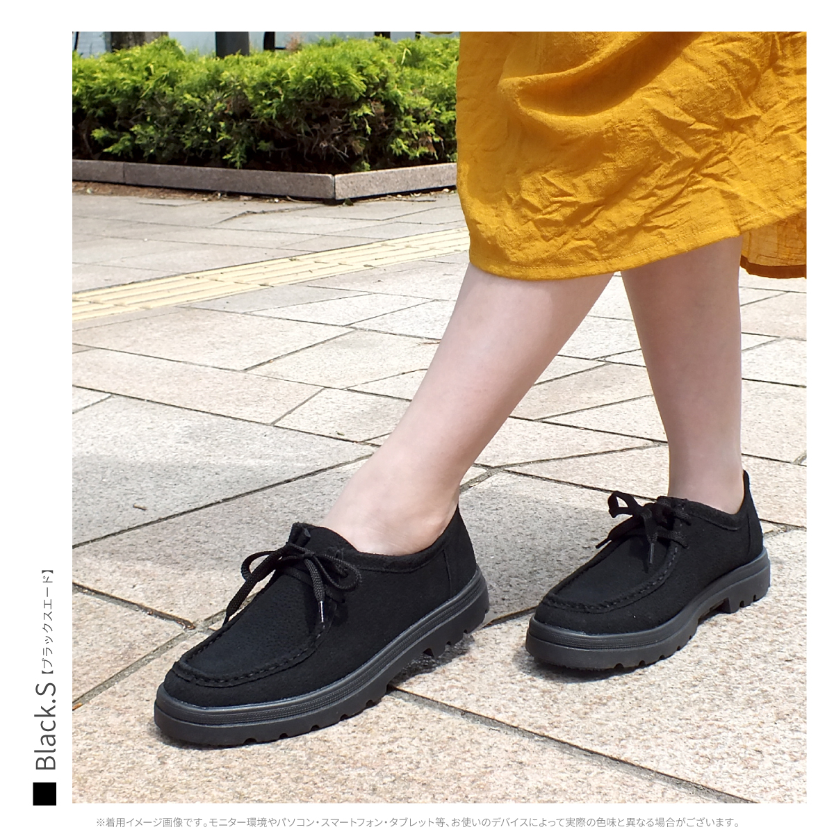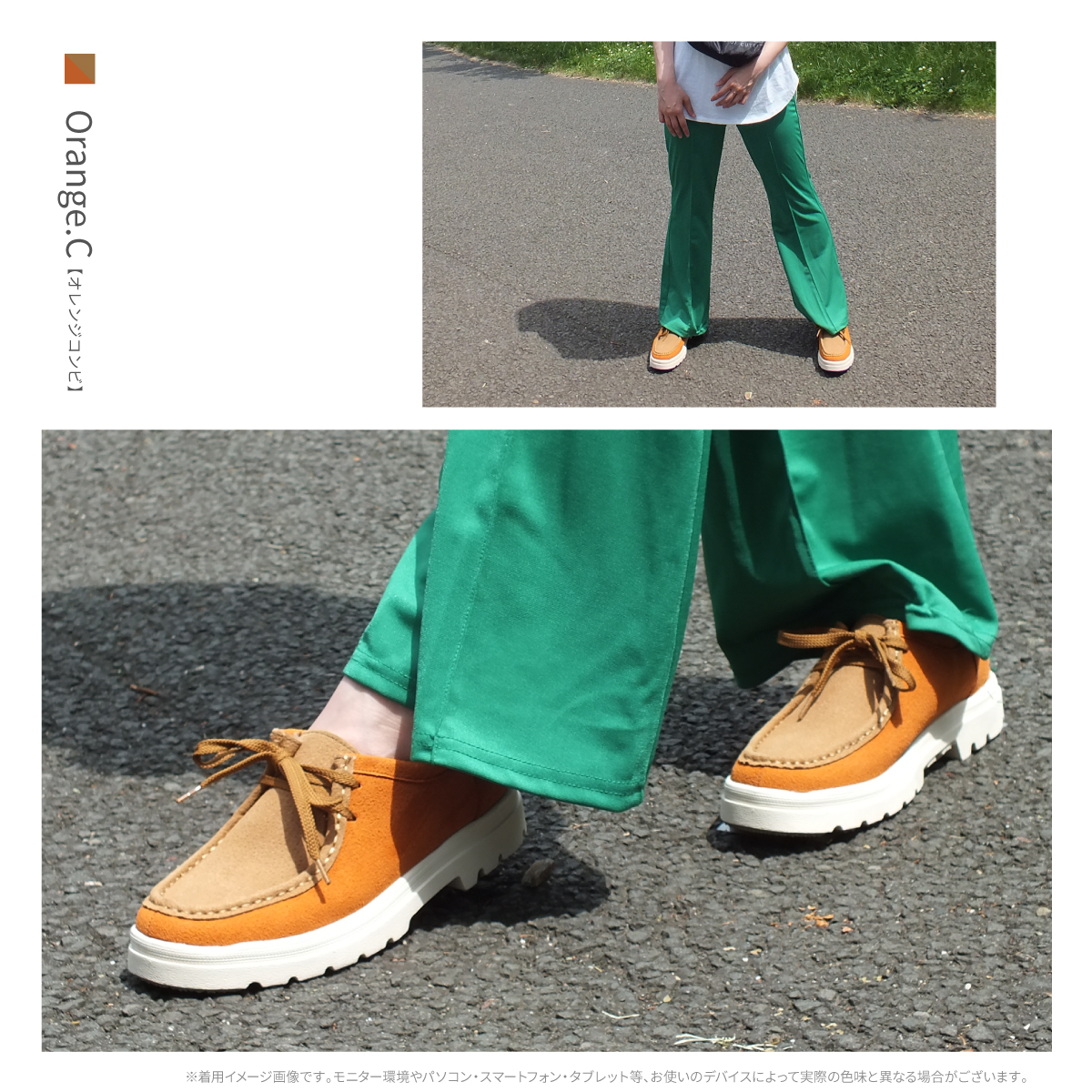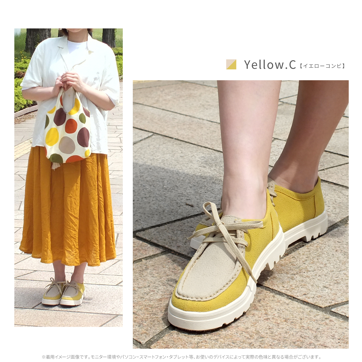 1)カラー:ブラック/ブラックスエード/ベージュスエード/グレーコンビ/オレンジコンビ/イエローコンビ