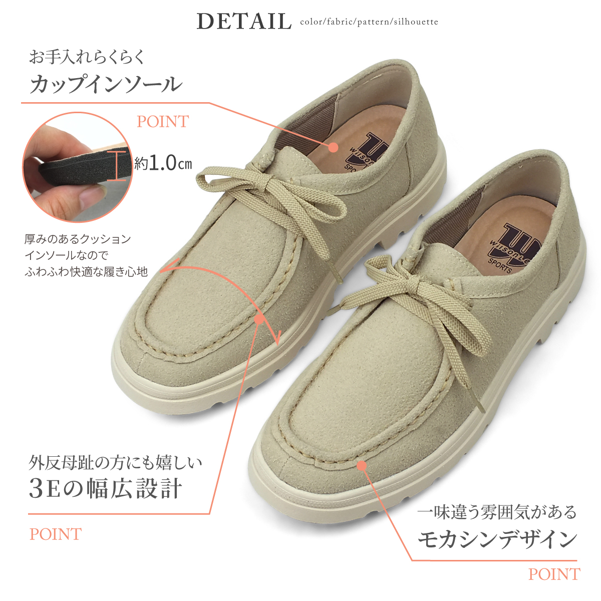 Wilson Lee SPORTS ウィルソンリースポーツ モカシンシューズ レースアップ レディース カジュアルシューズ スエード 3E 幅広 外反母趾対策 痛くない 軽量 爆買