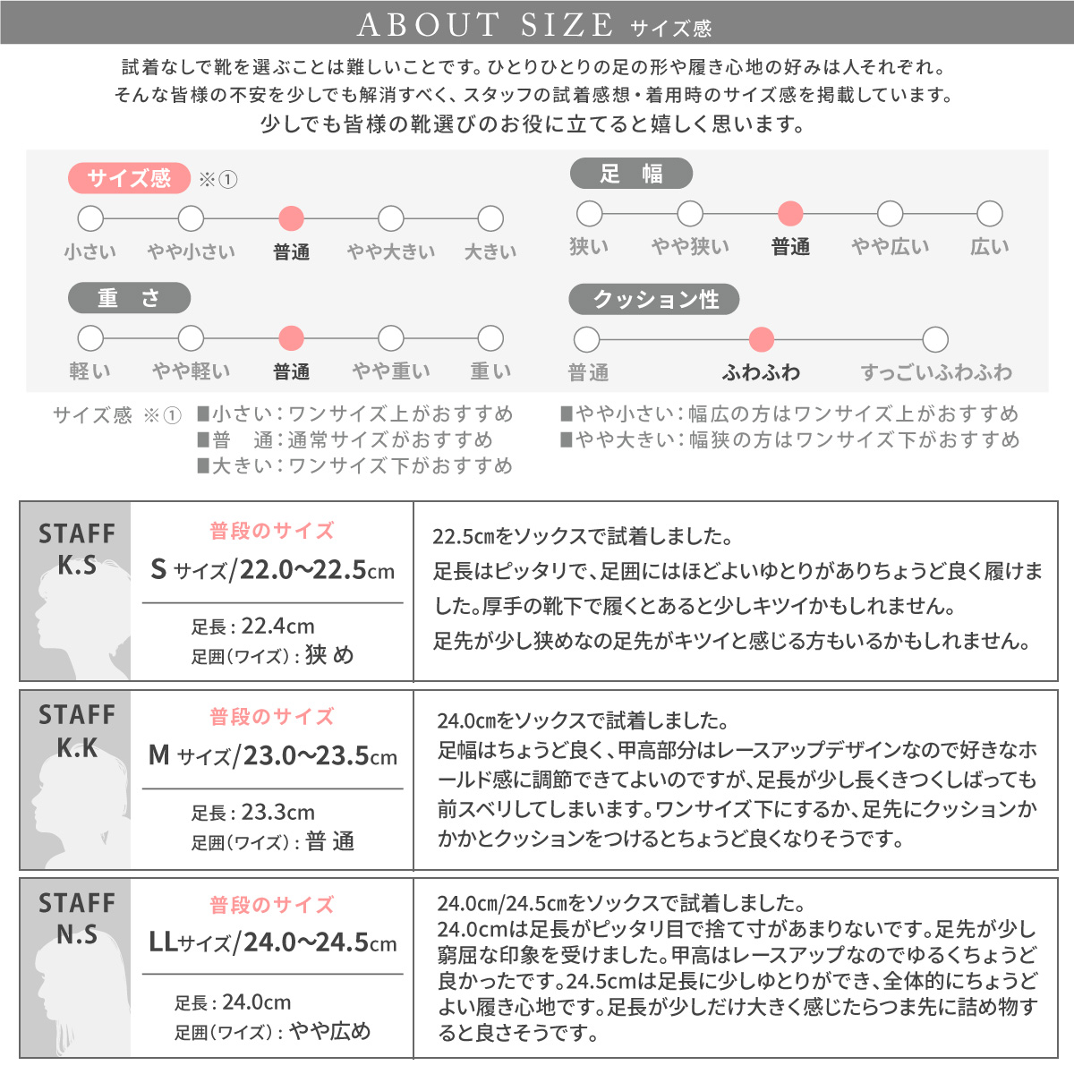 2)サイズ:22.5cm/23.0cm/23.5cm/24.0cm/24.5cm/25.0cm