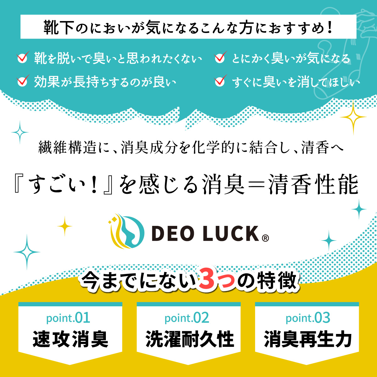 今までにない3っの特徴『速攻消臭』『洗濯耐久性』『消臭再生力』