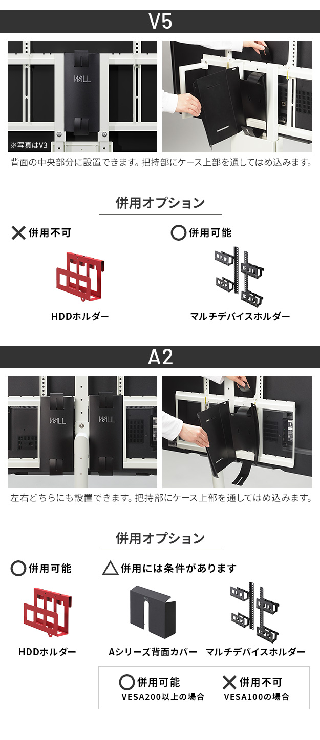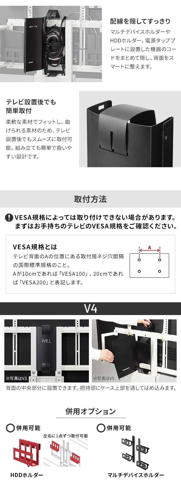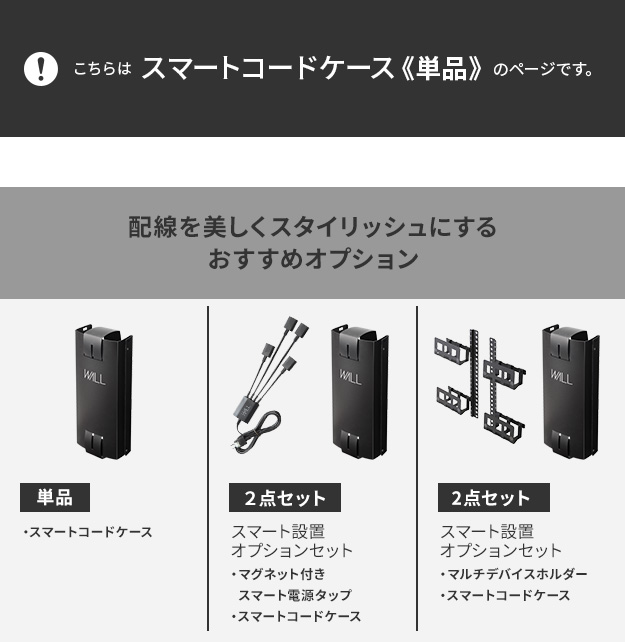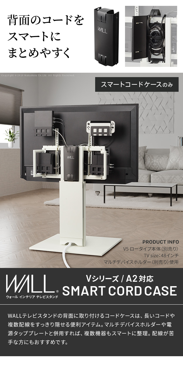 メーカー直送 WALLインテリアテレビスタンドVシリーズ/A2対応 スマートコードケース 追加オプション 電源コード コンセント 配線 背面収納 ケーブル 代引き不可