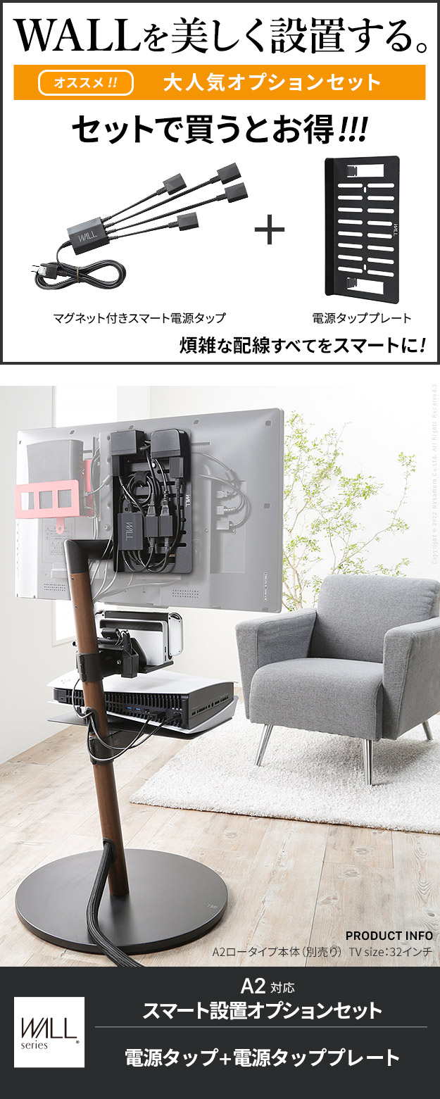 メーカー直送 WALL SEVENSTAND セブンスタンド A2対応 スマート設置オプションセット 電源タップ 電源タッププレート ケーブル収納 背面収納 代引き不可