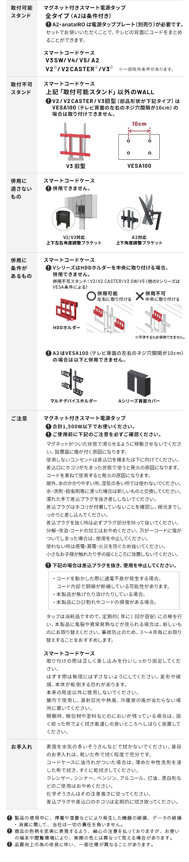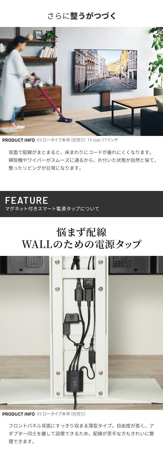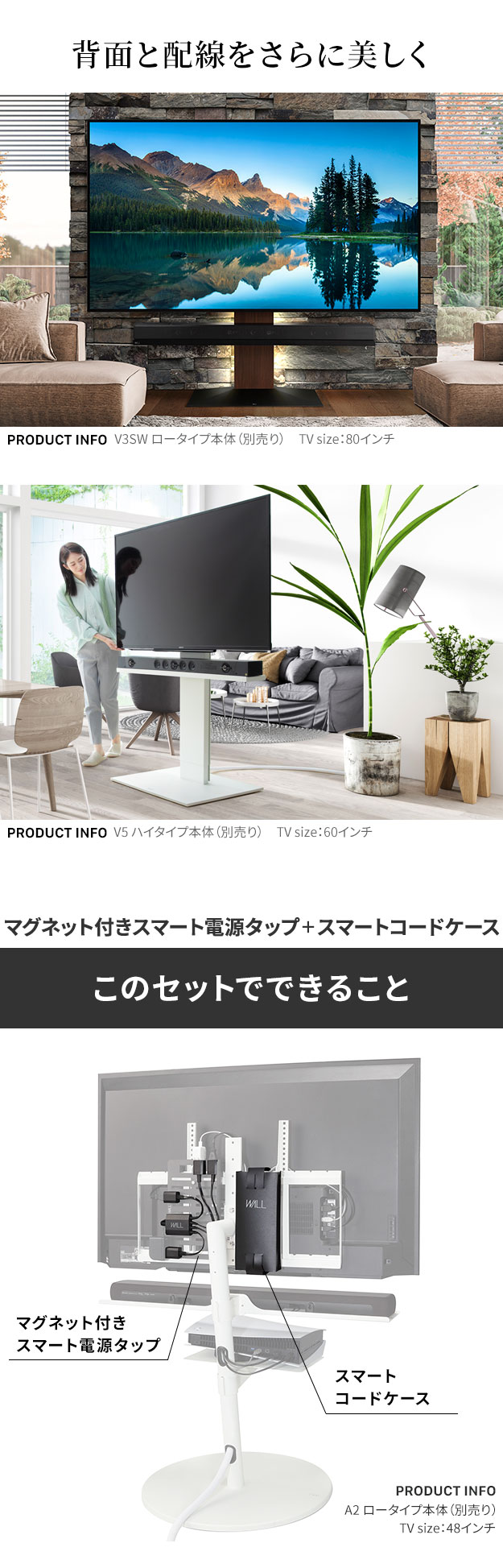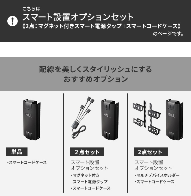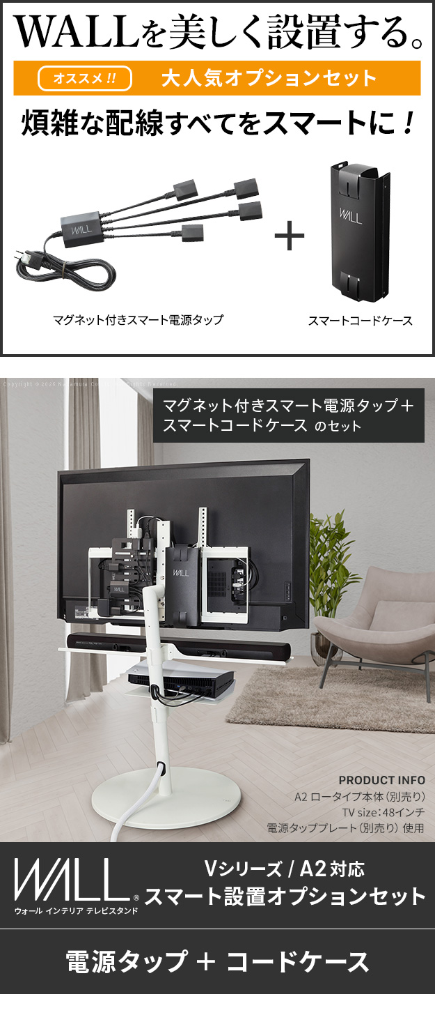 メーカー直送 WALLインテリアテレビスタンドVシリーズ/A2対応 スマート設置オプションセット 電源タップ コードケース 追加オプション 配線 背面収納 代引き不可