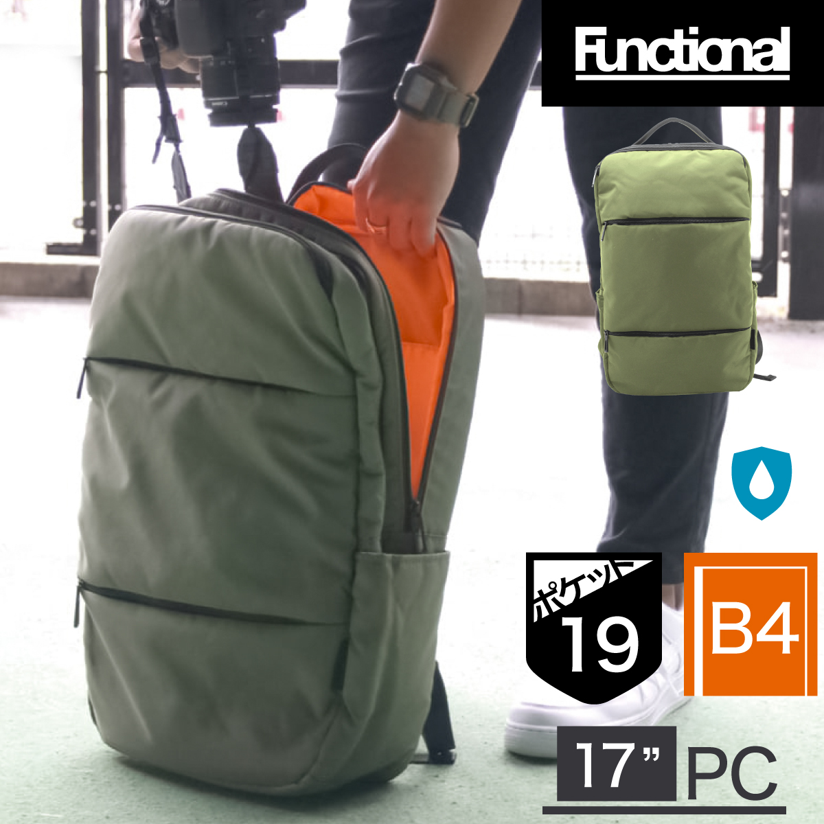 | 高密度ポリエステルを採用 中に中綿を入れ、軽さと丈夫さをカバーしています。通常モデルより全体に仕込んでいるクッション材が多くなっていますので、さらに衝撃に強くなっています。PCやタブレット、カメラなどの機器を運ぶのにもっとも最適です。 使い勝手に拘ったデザイン 見た目はシンプルですが、内側の仕切り、ショルダーベルトの角度や長さなど使い勝手にも拘ったモデルです。収納面が充実しているので、1泊2日の旅行や出張等でも活躍します。 B4、21Lまで入る収納力 背面側は十分な容量を確保し、17インチノートPC収納可能!タブレットケースもカバーするポケットです。中央部は、主にガジェット等をカバーすることをイメージされたポケットです。 3種類のフロントポケット 上部にすぐに取り出せるような小物を入れるポケット 中部にペンケース等のステーショナリーポケット 下部に小物等をいれるポケット サイドポケット 両サイドにペットボトルが十分入る容量のポケットを完備 ■商品名:FUNCTIONAL "ROBERT" 高密度ナイロン プロテクトデイバッグ ■ブランド:FUNCTIONAL ■型番:RCB-046TI ■カラー:ナイロンカーキ(現在はナイロンカーキのみの販売となります) ■サイズ(約):W28.5cm×H48.5cm×D15cm(マチの最大部分で計測) ■容量(約):21L ■素材:高密度ポリエステル ■生産国:中国 |
