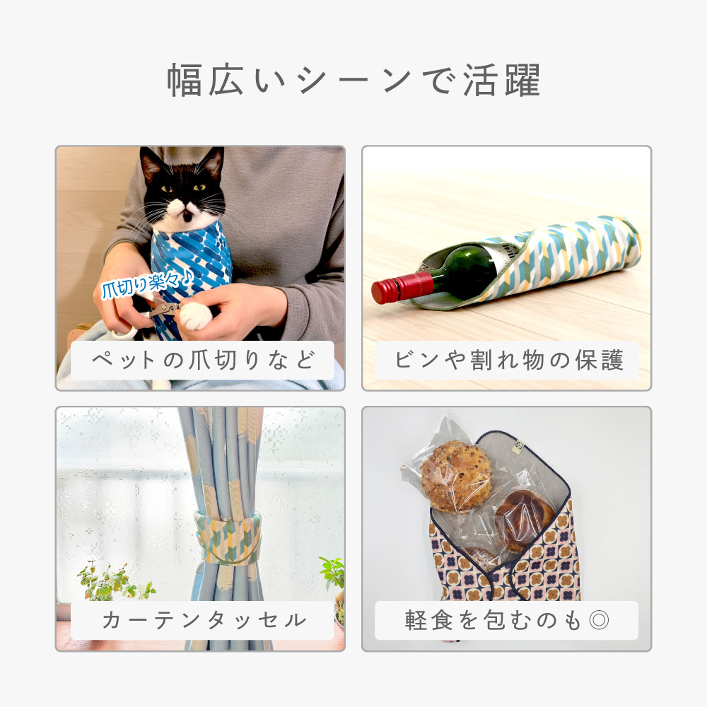 | 便利で彩りのある生活雑貨を皆様にお届けしたい、という会社のコンセプトから誕生し&UP(アンドアップ)のくっつきクロスが登場しました! くっつくタオルは、テレビで紹介されて今話題のアイテムです! 風呂敷代わりにお弁当を包んでそのままランチョンマットにしたり、タブレットなどを摩擦で傷付けたくない場合に包んでバッグに入れたり、折り畳み傘のケースとしてさっとくるんだり。 ファスナーが無いバッグの目隠しにも使えて、アイデア次第で様々な使い方が楽しめる優れものです。 |
