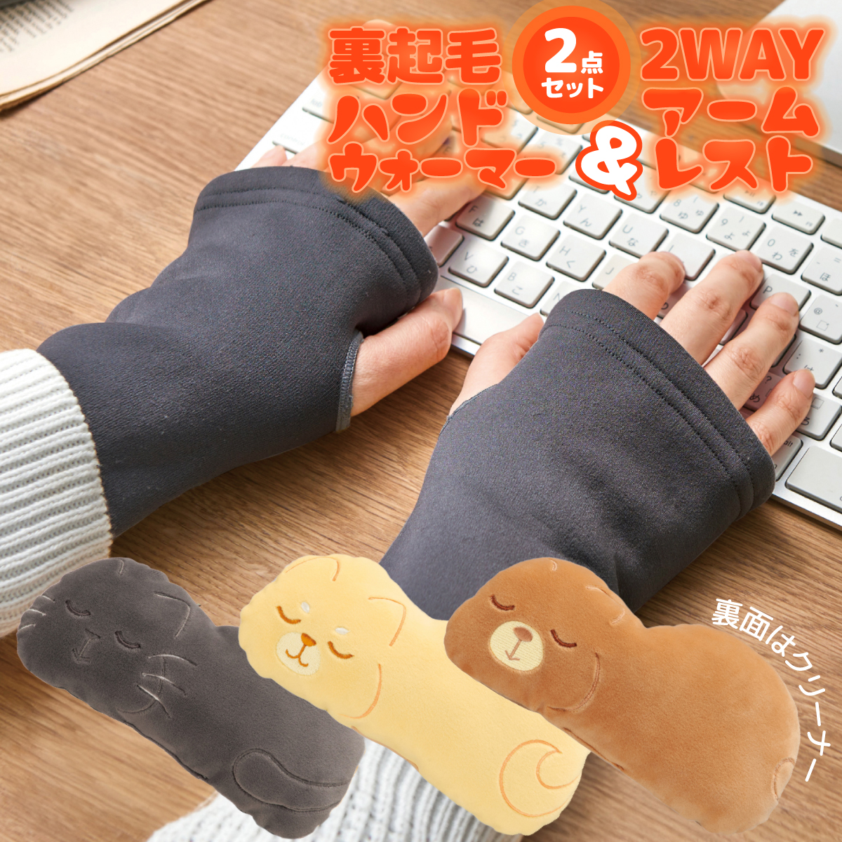 選べるセット内容 ●ハンドウォーマー&アームレスト(猫) ●ハンドウォーマー&アームレスト(犬) ●ハンドウォーマー&アームレスト(熊)