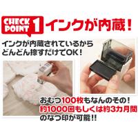 スタンプ台不要のシヤチハタみたいなインク内蔵回転式セルフインカータイプで、室内に置きっぱなしでもインクが乾きにくいので手軽におなまえつけが可能です。