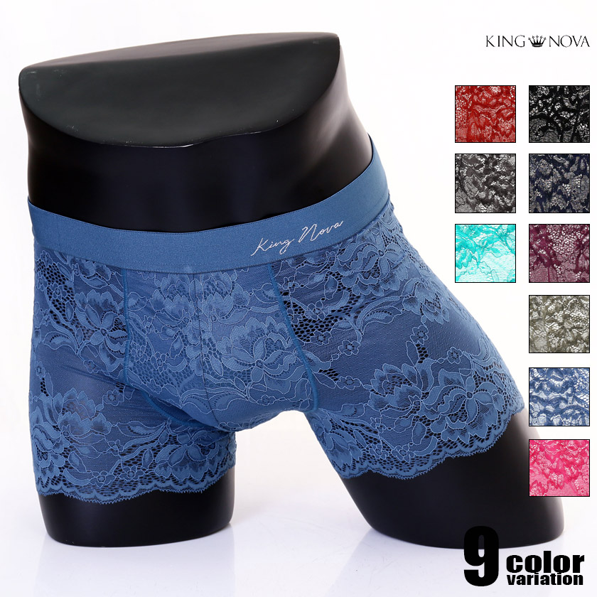 ボクサーパンツ メンズ KING NOVA/キングノバ 9カラー 花柄 フラワー 足口フリル プリントレース 総柄 総レース 花柄