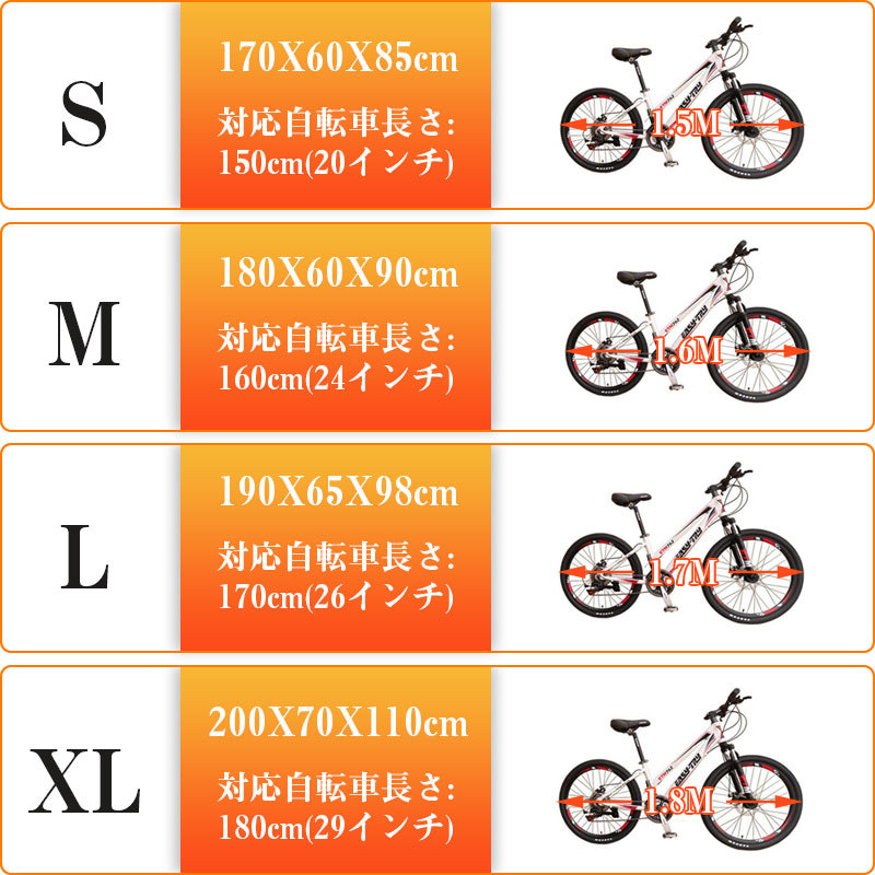 XL:200X70X110cm 対応自転車長さ180cm(29インチ);