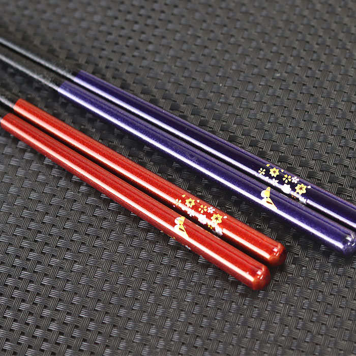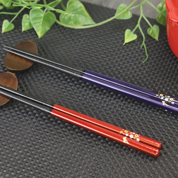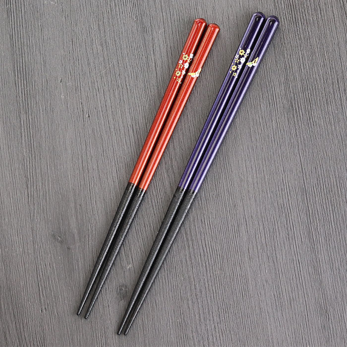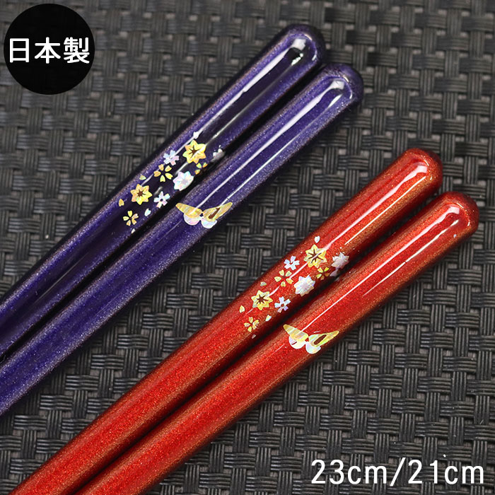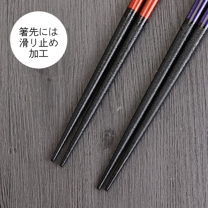 箸 日本製 蝶もよう 紫 赤 1膳 全2種 単品 若狭塗り 箸 若狭箸 かわいい 国産 カトラリー 和 食器 すべらない箸 滑り止め加工 プチギフト 木製食器