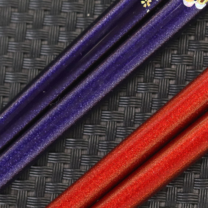 蝶・花もようの高級感ある漆塗り箸。