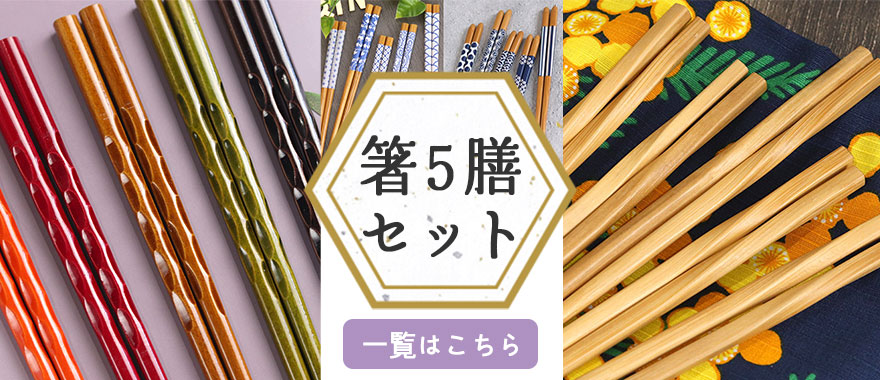 細すぎず太すぎない、ちょどいい持ち感と手触りが魅力的なお箸5膳セットです。洗い替え用に、家族での色分け用に、普段使いからお客様用まで…様々なシーンや用途でお使いいただけます。
