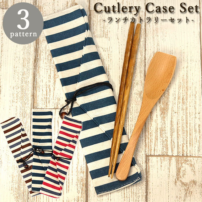木製 箸 スプーン 収納袋 セット 巻きタイプ ストライプ 3種 メール便送料無料