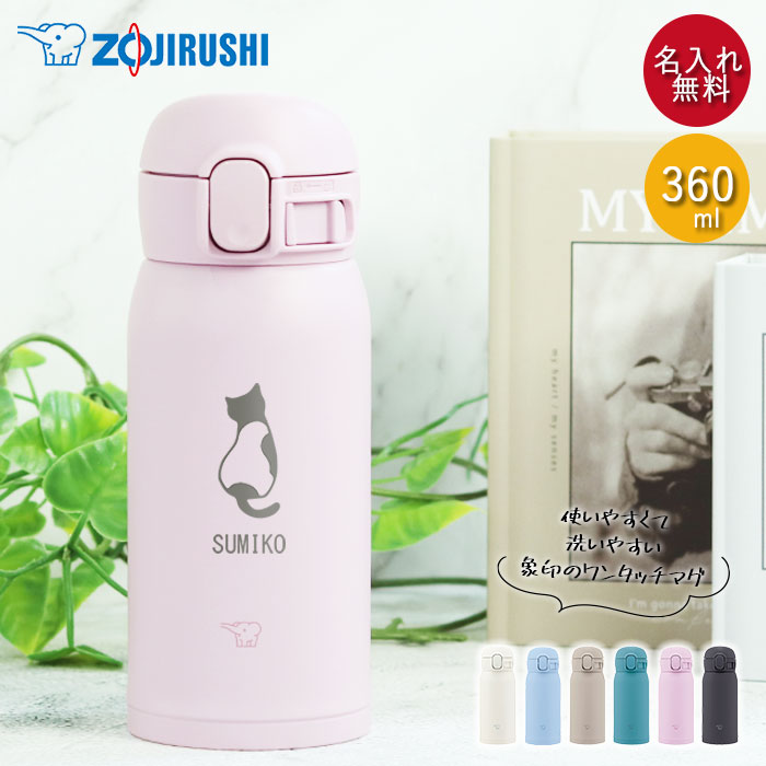 水筒 名入れ 象印 ステンレス ボトル シームレス せん 360ml ねこデザイン SM-WA36 保冷 保温 お名前 入り プレゼント お祝い ギフト