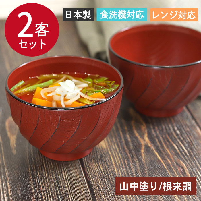 お椀 椀 汁椀 食洗機対応 電子レンジ対応 日本製 山中塗り 匠彫汁椀 根来調 2客セット 箱入り 割れない 食器 和食器 シンプル 軽量 軽い 樹脂製