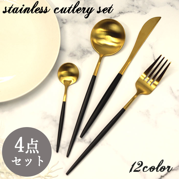 ステンレス カトラリー 4点 セット メール便送料無料 スプーン フォーク ナイフ コーヒースプーン ティースプーン 北欧 インスタ映え プレゼント 来客
