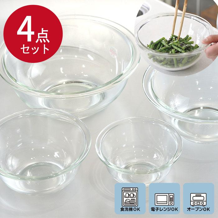 ボウル 耐熱ガラス iwaki イワキ 透明 ボウル4点セット 電子レンジ対応 食洗機対応 箱入り システムセット 料理 ガラス 食器 シンプル