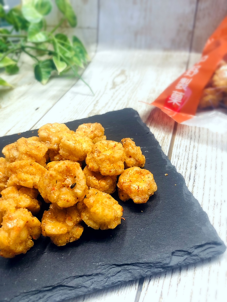 うるち米の生地をこめ油で揚げ、甘辛の醤油だれで味付けした揚げあられに七味唐辛子をまぶした当店の隠れた逸品です。ピリッとした辛さは、ビールのおつまみに最高です。