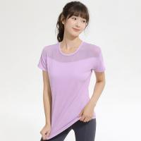 ・背中見せ ロング丈メッシュ半袖ヨガトップス