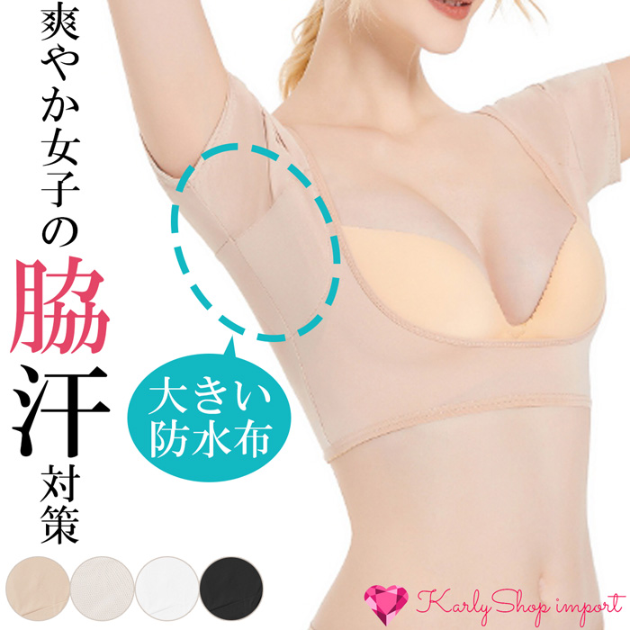 KarlyShop import 汗取りパット 汗染み防止 パッド付き インナー 半袖 汗取り レディース 汗対策 吸汗速乾 夏 わきが対策 脇汗パッド 脇汗インナー hd002
