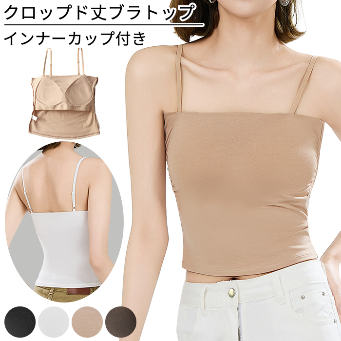 美ラインカップ付き ブラトップ クロップド丈 レディース 肩紐調整 ブラキャミ 一端型パッド トレンド 年中使える インナー 美胸 快適 黒 白 茶 rr-017