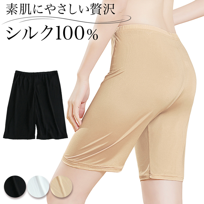 シルク 100% ペチコート オーバーパンツ ショート丈 インナーパンツ さらさら ゆったり 肌に優しい 吸汗 保温性 ストレッチ 吸湿性 保湿性 伸縮性 黒 白 rs-046
