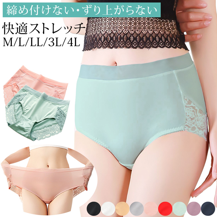 深ばき お腹 すっぽり ショーツ レディース 締め付けない ずりあがらない 薄い 軽い ストレッチ 伸びる 大きいサイズ レース スタンダード パンツ 下着 s331