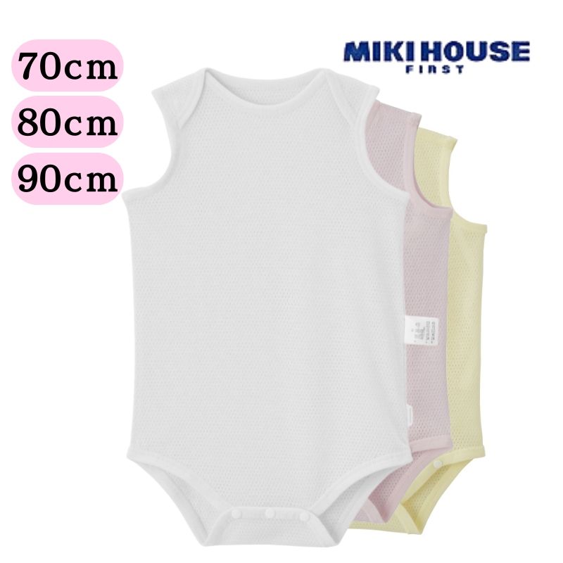 ミキハウスベビー メッシュ天竺 ノースリーブ ロンパース肌着 70cm 80cm 90cm mikihouse 40-1562-781